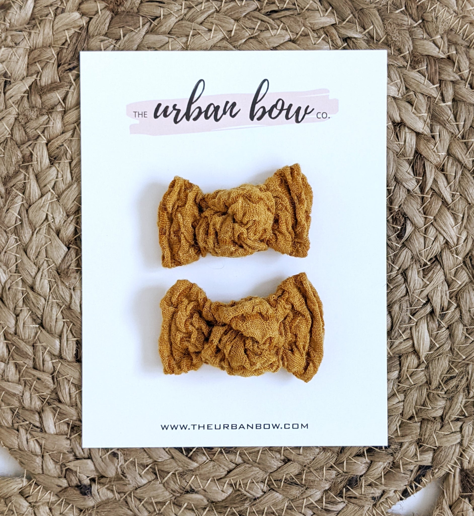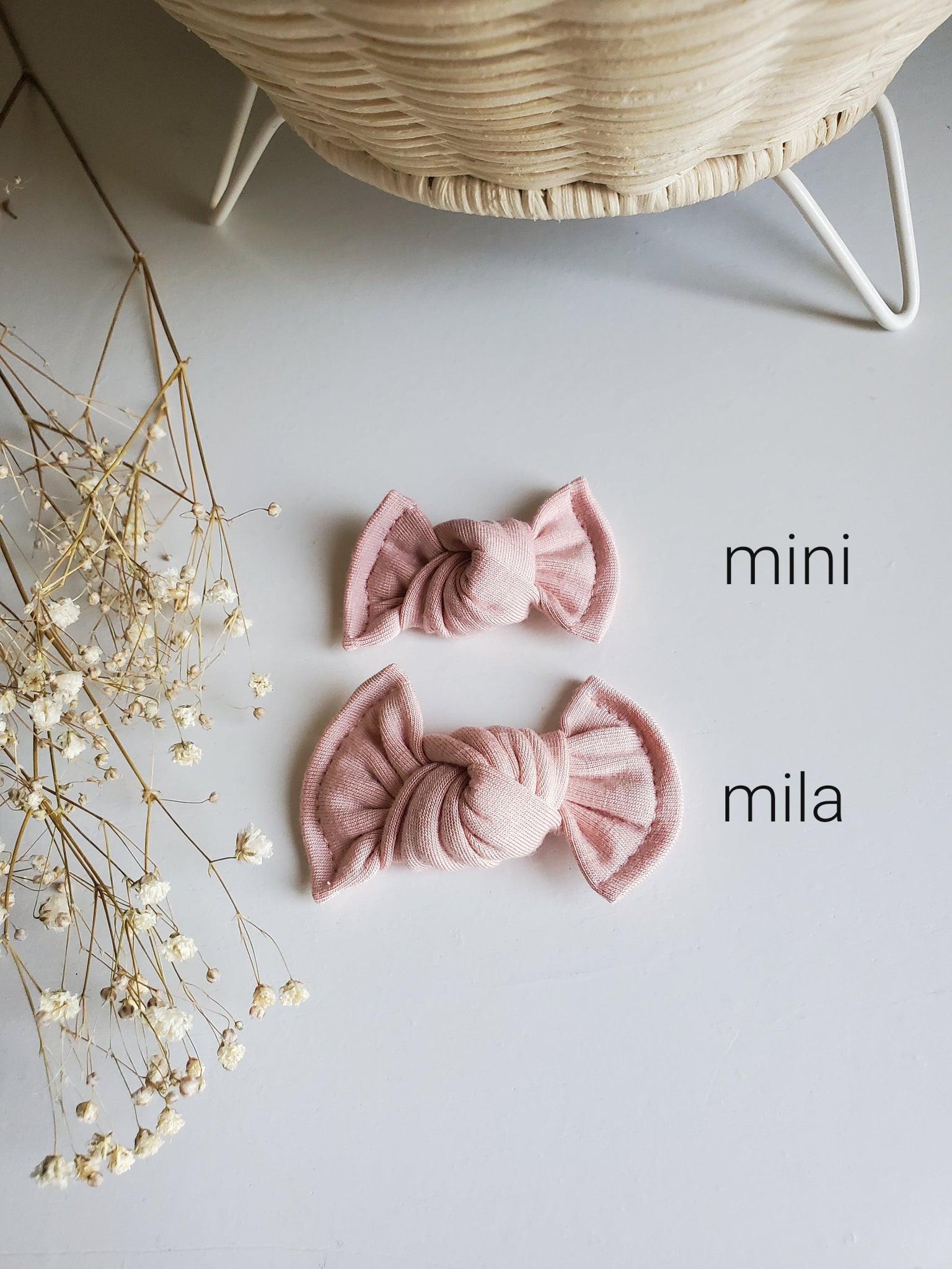 A set of piggies! 2 bow clips that can come with or without clip grip. Choose the mini or Mila stlye! The Mila bow is an inch bigger than the Mini.