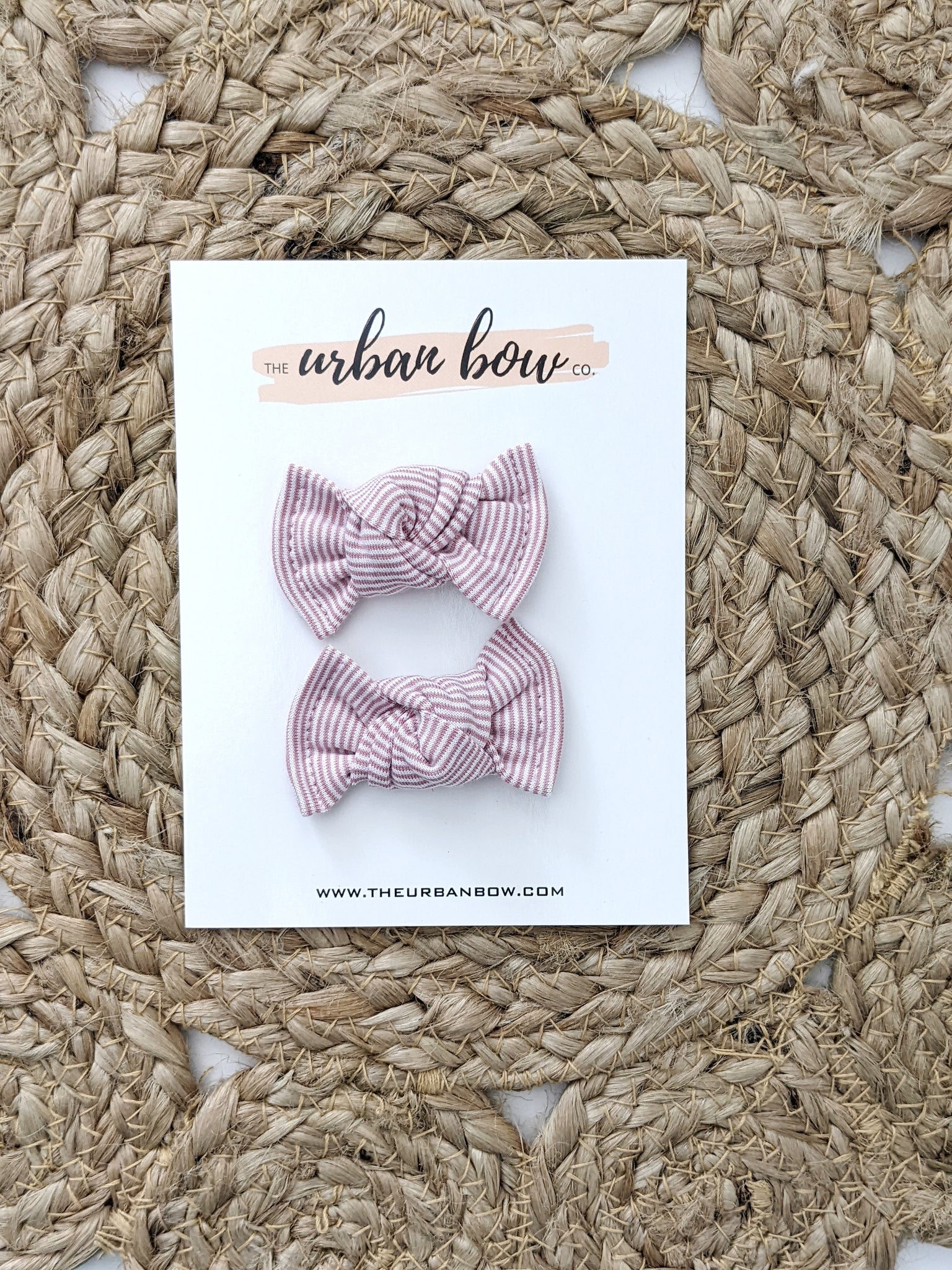 A set of piggies! 2 bow clips that can come with or without clip grip. Choose the mini or Mila stlye! The Mila bow is an inch bigger than the Mini.