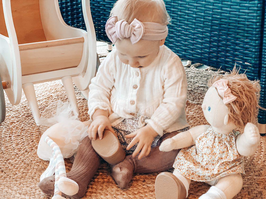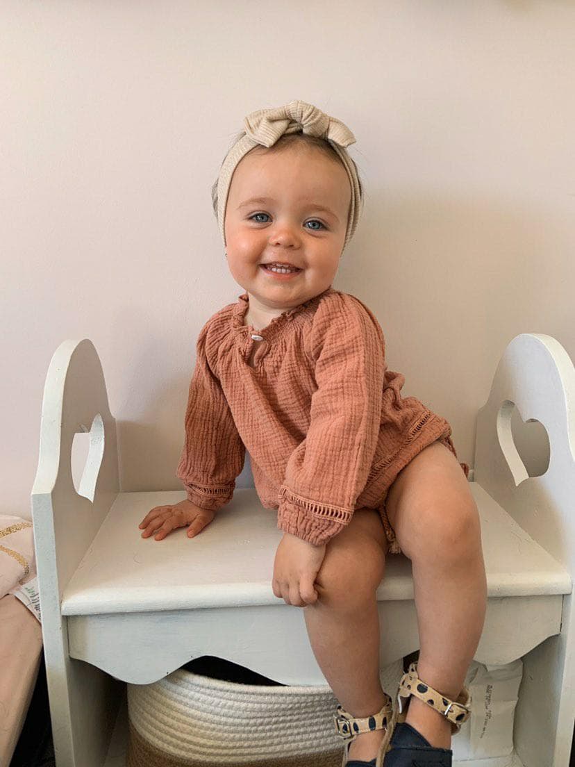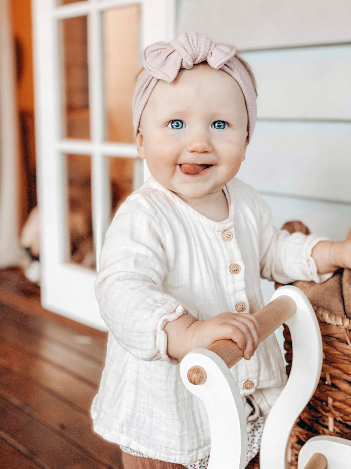 This bow is made from a super soft and ultra stretchy fabric that can be retied to extend its life. It has a ribbed texture to it and has amazing stretch! It will look smaller than the others but that's just to allow for the crazy amount of stretch it has.